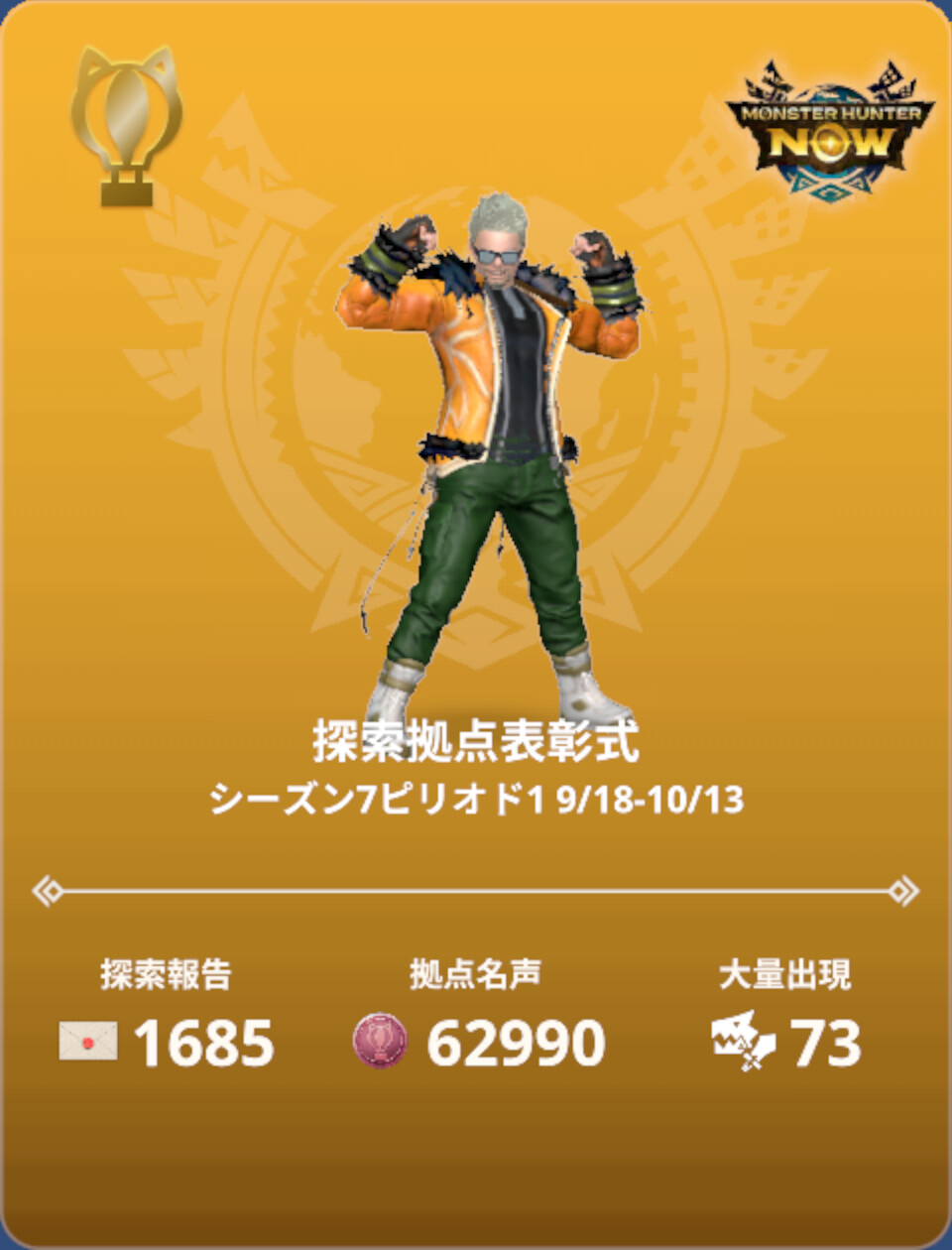 遠方へ旅行に行ってたようで、おそらく第二ピリオドでスタートダッシュを決めるため、距離ボーナスのかかる大量の証をストックしていたようです。