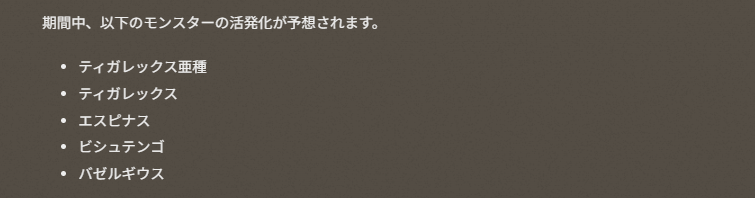 ・期間中、イビルジョーは不安定エリアの乱入で出現しません。