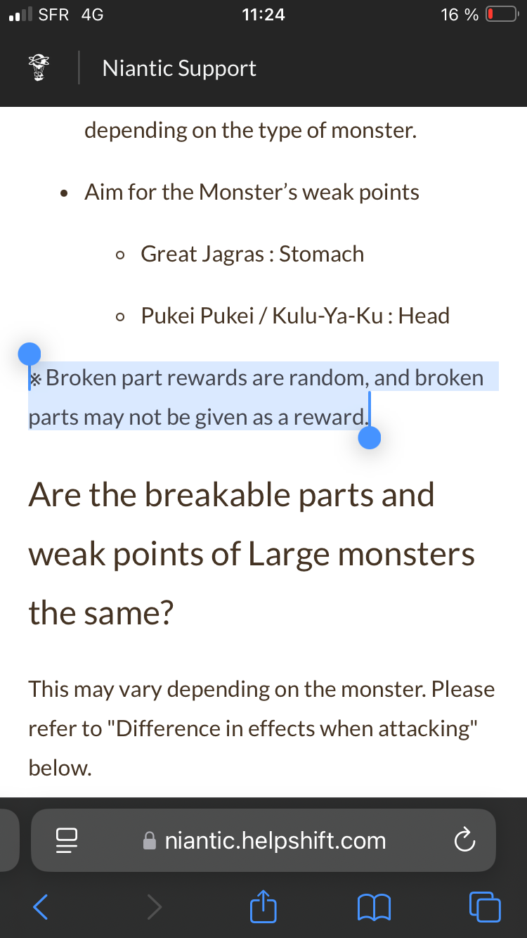 My suggestion to include this information in Hunter’s Notes for each monster, or have the rewards screen show which part break resulted in which bonus drops.