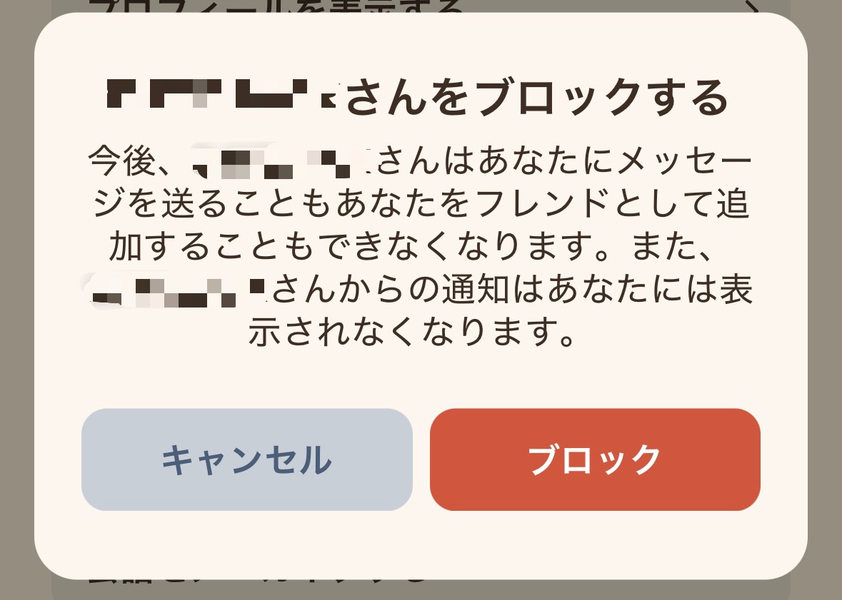 ブロックする際、“あなたをフレンドに追加できなくなります”とありますが、フレンド申請出来なくなるという意味で間違いがなければ、不具合だと思いますので調査お願いします。