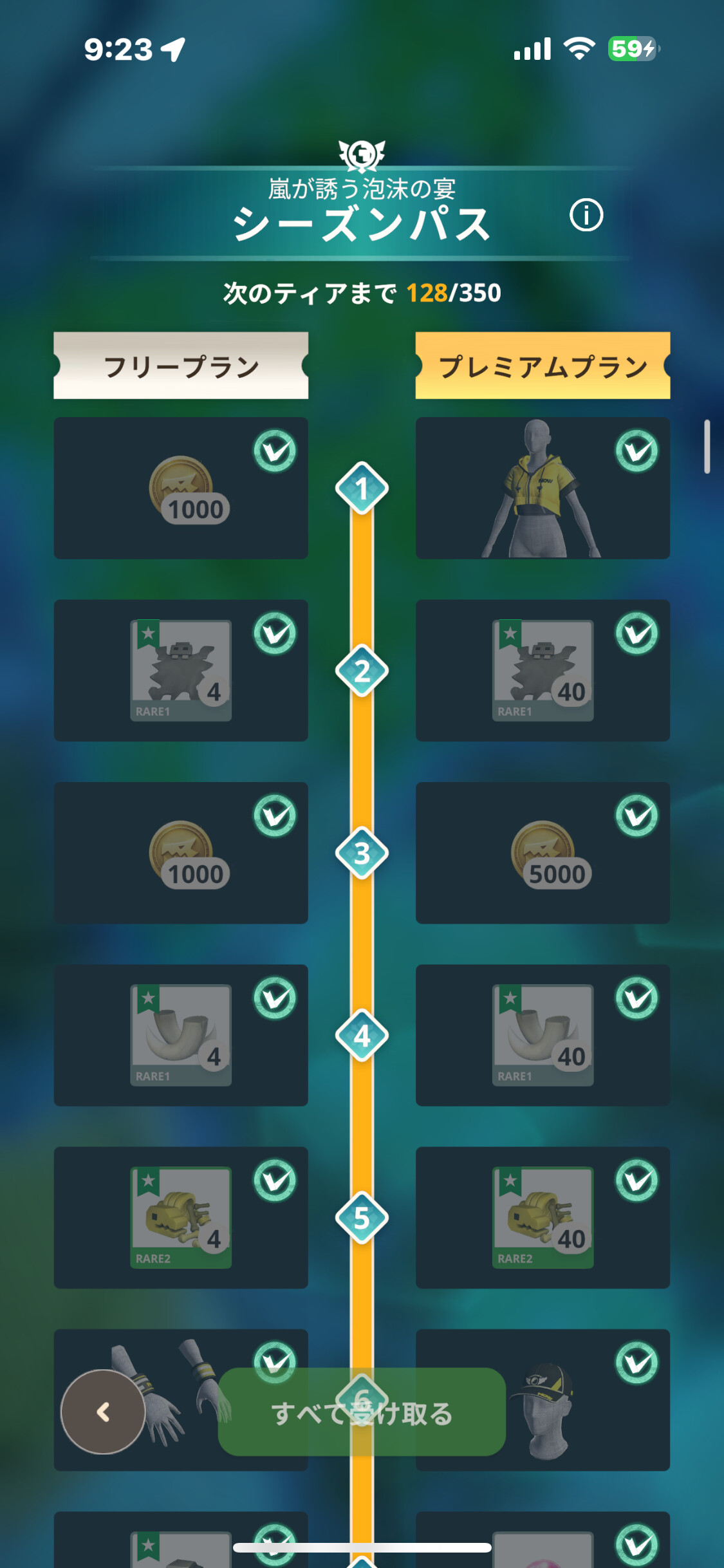 シーズンティアが1以上進み、シーズンティア報酬が新しく受け取れる状態にする。[ホーム]→[ティア]を開くと、“シーズンティア1”の画面(一番上になってしまう)が開かれ、現在のティアを見るには下までスクロールしなければならない。